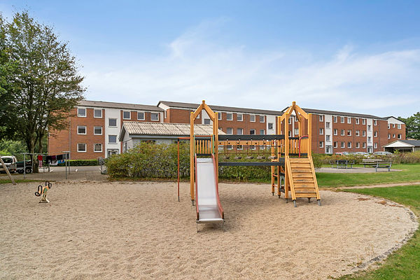 områder med hyggekroge og en dejlig legeplads. I Østre Allé 19-59 har boligerne i stueplan terrasse og have mens boligerne på 1. sal har åbne altaner.